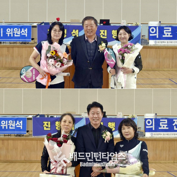 또한 이번 대구 동구 배드민턴 발전과 대회 개최에 기여한 회원에게 전달되는 공로패 시상에서 구체육회장상은 동문클럽 심영순, 공항클럽 조서윤이 수상했다. 또한 대구시협회장 표창장은 신천클럽 정현숙, 팔공클럽 김희영에게 수여됐다. |