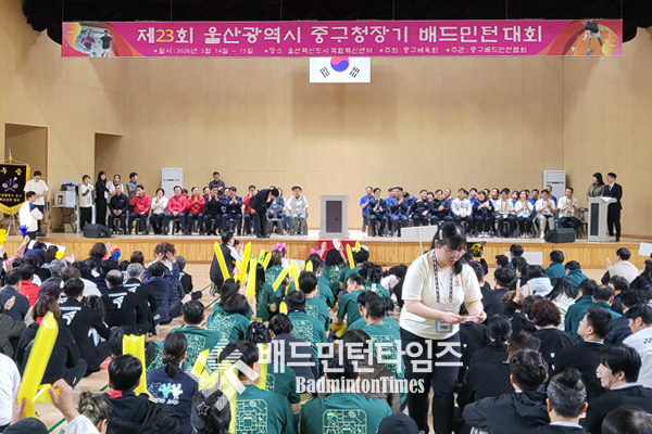 [배드민턴타임즈] 제23회 울산광역시 중구청장기 배드민턴대회가 14일과 15일 이틀 동안 울산혁신도시 복합혁신센터에서 성황리에 열렸다.