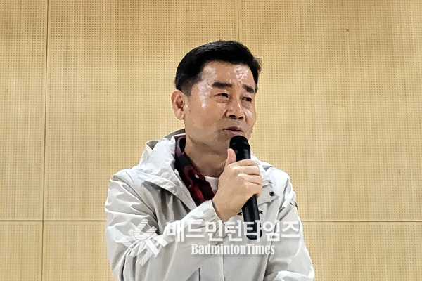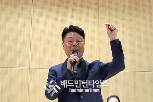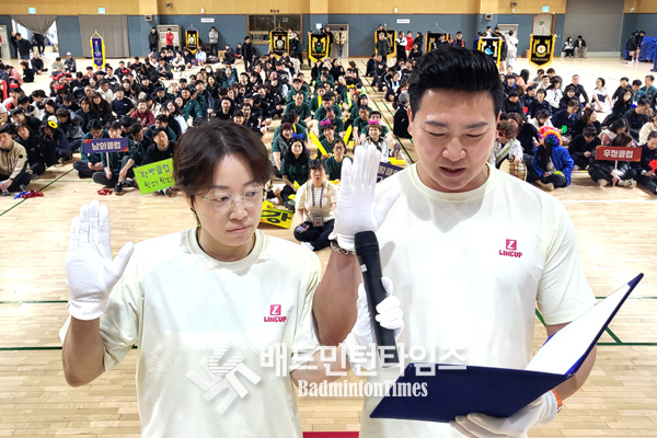 김홍식 울산광역시배드민턴협회장은 격려사 대신 “여러분 즐겁죠?”라고 동호인들에게 묻고 함께 손 하트를 만들며 “사랑합니다!”라고 외쳐 경기장에 웃음과 환호를 이끌어내는 등 화기애애한 분위기를 연출했다. |