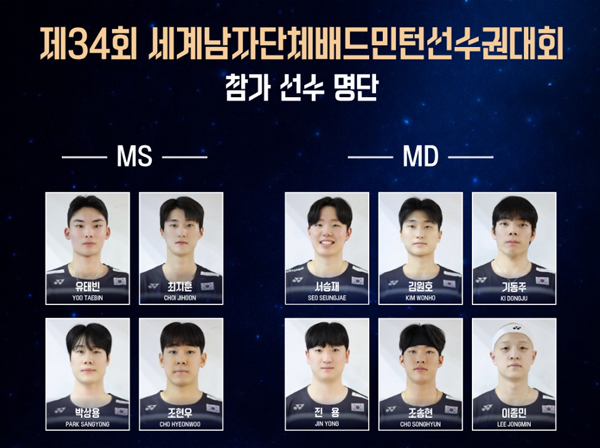 남자대표팀은 토마스컵 C그룹에서 덴마크, 대만, 스웨덴과 경쟁한다. 김원호(삼성생명)-서승재(삼성생명)를 중심으로 한 복식 전력과 함께 조현우(국군체육부대), 조송현(국군체육부대), 최지훈(인천국제공항) 등 젊은 자원들이 조화를 이루며 팀을 구성했다.