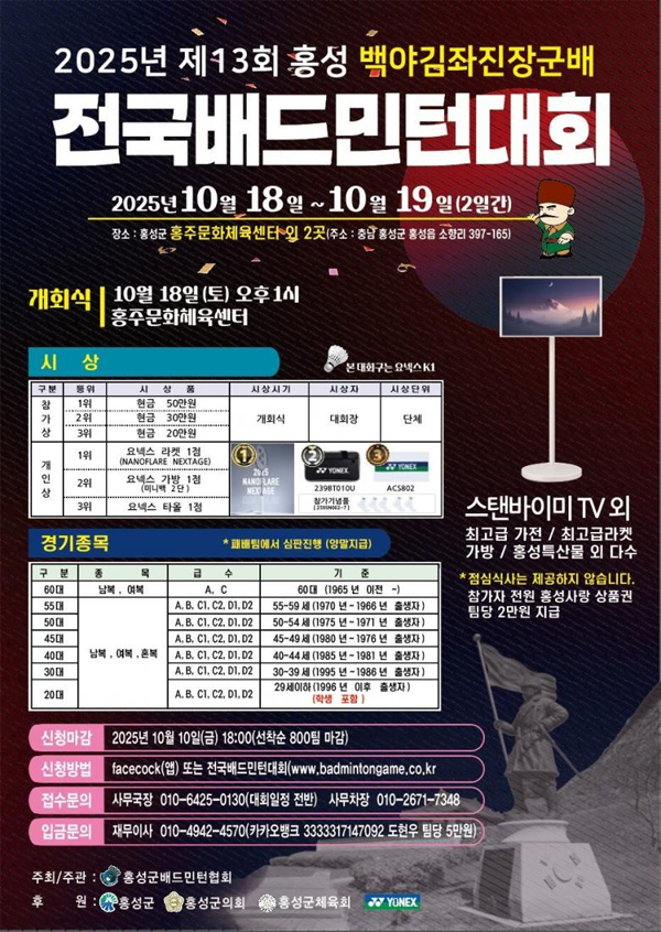 대회 제13회 홍성김좌진장군배 전국 배드민턴대회