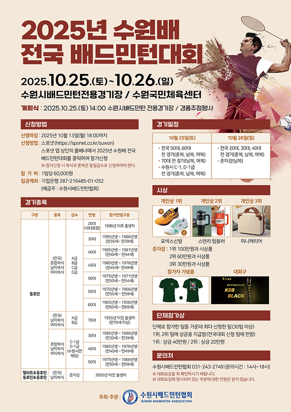 ◎ 대 회 : 2025년 수원배 동호인 전국 배드민턴대회