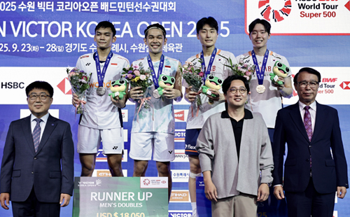 서승재(삼성생명)-김원호(삼성생명) 조가 2025 수원 빅터 코리아오픈 월드투어 슈퍼500 남자복식 정상에 올랐다. 남