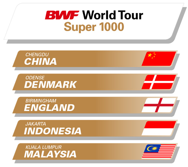 월드투어 최상위 등급인 슈퍼 1000 대회는 중국오픈, 덴마크오픈, 잉글랜드오픈, 인도네시아오픈, 말레이시아오픈 등 총 5개 대회로 구성된다. 이들 대회는 월드투어의 핵심 이벤트로, 각 대회당 총상금 200만 달러가 책정돼 기존 2026년 대비 대폭 인상됐다. 슈퍼 1000 대회는 세계 최정상급 선수들이 집중 출전하는 무대로, 전 경기 TV 제작 중계가 이뤄지며 글로벌 노출의 중심축 역할을 하게 된다. |