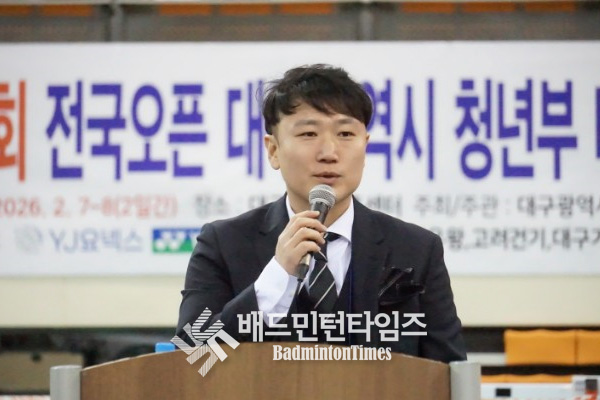 정승호 대구광역시 배드민턴협회장은 환영사를 통해 참가자들에게 감사를 전했다. 정 회장은 “전국 동호인들이 기다려지는 명품 대회로 거듭나 조기 마감까지 기록하게 되어 기쁘다”며 “조금 추운 날씨지만 대구의 명소와 맛집 투어도 함께하며 대구를 더 깊이 알아가는 시간이 되길 바란다”고 전했다. 아울러 동호인 가정의 건강과 행복을 기원하는 따뜻한 인사를 잊지 않았다. |