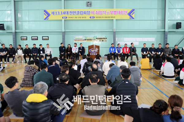 ‘제13·14대 천안클럽 회장 이취임식 및 부별대항전’이 2월 22일 11시 천안시배민턴체육관에서 성황리에 열렸다. 이날 행사에서는 제13대 전원도 회장의 이임과 함께 제14대 심민식 회장의 취임이 공식화됐으며, 전 회원이 함께하는 부별대항전도 이어지며 화합의 장이 펼쳐졌다. |