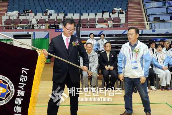 11일 오전 11시에 열린 개회식은 최상범 서울시배드민턴협회 부회장의 개식통보를 시작으로 국민의례, 내빈소개, 우승기 반환, 표창장 수여, 대회사, 선수대표 선서 순으로 진행됐다. |