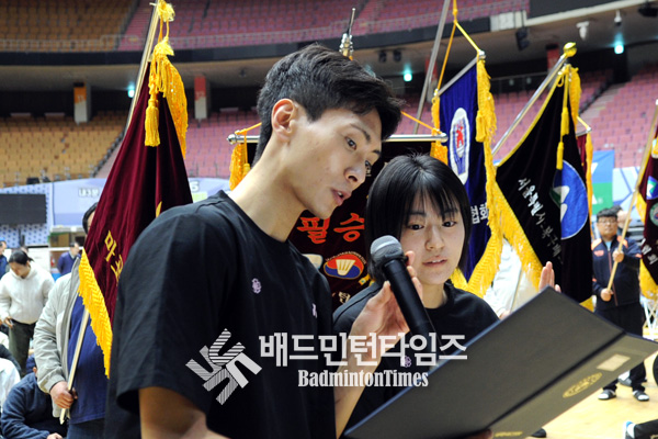 개회식 마지막 순서로 선수대표 김덕훈-이수민은 선서를 통해 공정하고 스포츠맨십에 입각한 경기 운영을 다짐했다. |