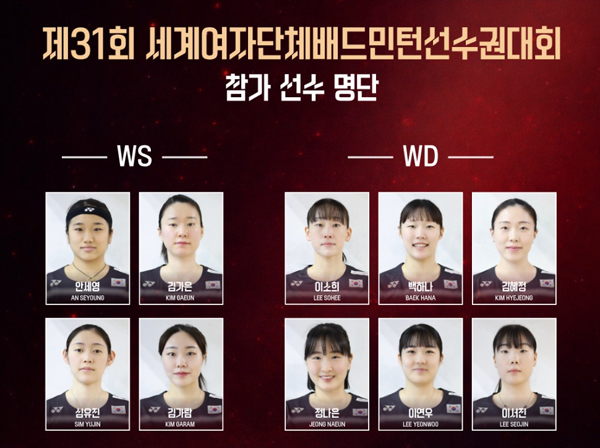 대한민국 배드민턴 남녀 국가대표팀이 2026 세계남녀단체배드민턴선수권대회에 출전해 세계 정상에 도전한다. 이번 대회는 4월 24일부터 5월 3일까지 10일간 덴마크 호르센스 포럼에서 개최된다.