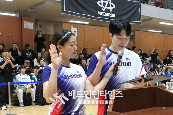 개회식 마지막 순서로 이선우-박서현 동호인이 선수대표로 나서 “대회 규정을 준수하고 페어플레이 정신으로 임하겠다”고 선서하며 개회식을 마무리했다. |