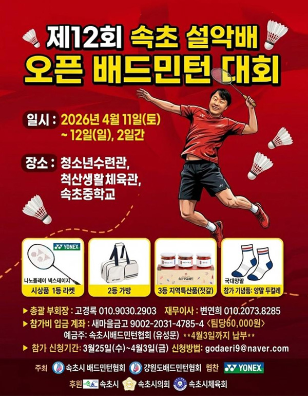 ◎ 대 회 : 제12회 속초설악배 전국 배드민턴대회