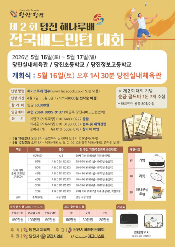 ◎ 대 회 : 제2회 당진 해나루배 전국 배드민턴대회