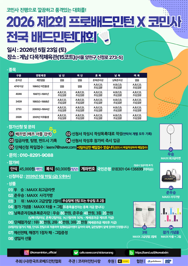 ◎ 대 회 : 제2회 한국프로배드민턴X코민사 전국 배드민턴대회