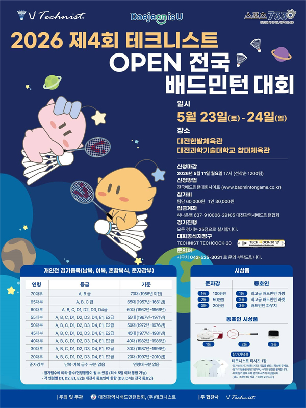 ◎ 주 관 : 대전광역시배드민턴협회, 테크니스트